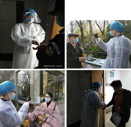 保健消化科按照医院统一安排,科室全体医护人员积极投入,分配任务、准备物品,做好疫情防控工作。科室医护人员姜惠、李曼曼、杨慧莹、王莹、朱彤等人驻守保健楼南大门、东侧门观光梯等关键位置,冒着凛冽寒风为每一位来院人员进行体温检测,做好初筛和宣传。许多患者家属不理解预检分诊台测体温、询问、登记工作的重要性,需要医护人员做好解释说明工作,因不断说话顾不上喝水,姜惠嗓音已完全沙哑。