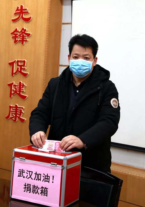 党委书记赵升田、院长赵家军以及全体院领导第一时间带头捐款。在各党总支、党支部的组织和号召下,党员干部充分发挥先锋模范作用,全院职工积极响应号召,通过现场捐款、微信、支付宝转账等方式,积极踊跃地参与到捐款活动中来。医院退休职工、老年志愿者赵红斌身体多病,在家中一直关注湖北疫情,听说医院组织捐款的消息,立即捐款一万元。一位在医院工作的物业人员,听说了捐款的消息,专门来到医院财务部主动要求捐款。