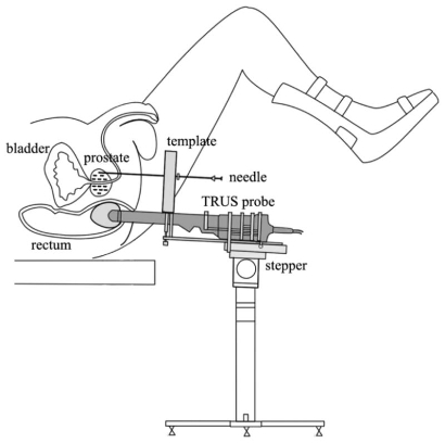 前列腺癌粒子植入技术,即放射性粒子的组织间种植治疗,又称前列腺癌近距离治疗(Brachytherapy)通过三维治疗计划系统的准确定位,将放射性粒子植入到前列腺及其周边,提高前列腺的局部剂量,而减少直肠和膀胱的放射剂量。适用于早期前列腺癌患者。其特点为疗效好,与前列腺癌根治术相当;并发症少,突出表现在尿失禁及阳痿发生率低;创伤小,病人容易耐受,在欧美国家属于门诊手术。国内常用放射性125碘粒子呈棒状,长4.5~4.8mm, 直径为0.8mm,125碘吸附于一根银棒上,外包钛金属外壳。125碘半衰期为60天。目前为止,随着我院对该技术的大力支持与我科人员的积极学习应用,已行21例粒子植入手术,术后患者恢复良好,是一项安全可靠,效果显著的综合治疗技术。疗效满意,至今无一例出现严重并发症。