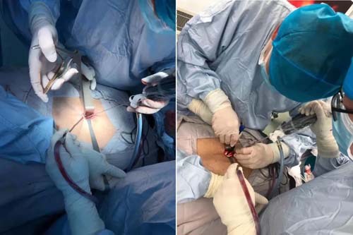 患者摆好手术体位后,崔新刚教授精准定位责任间隙,在脊柱内镜辅助下,各解剖结构得到清晰呈现,崔新刚教授精准完成双侧神经减压、椎间融合和椎弓根螺钉固定,整个手术过程历时不到2个小时。手术顺利完成,老林自觉腰部及其下肢疼痛明显缓解。经过积极术后康复与治疗,老林术后5天就顺利出院。